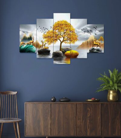 Nature Set of Five 3D Framed Paintings for Wall Decoration - Ideal for Home, Living Room, and Bedroom (125 x 60 CM)