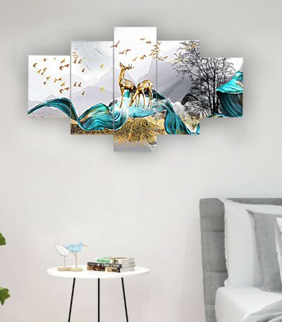 Modern Art Set of Five 3D Framed Paintings for Wall Decoration - Ideal for Home, Living Room, and Bedroom (125 x 60 CM)