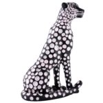 Black Golden Panther Sitting Position Animal Showpiece Antique Sculpture for Home Decor Showpiece Figurine