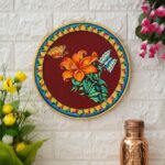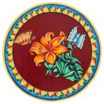 Decorative Red Plate with Butterfly and Flower Pichwai Painting