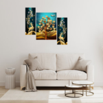 Presents This Set Of 3 Amazing Paintings For Your Wall . The Painting Will Completely Change The Atmosphere Of The Room Whire It is Placed . The Paintimg Is Made On Heavy Wooden Board And Has A Digital UV Coating On It Which MAKES It Very Easy To Clean . Pricing Of The Product Is Made Very Reasonable From Our Brand As Per The Quality We Are Providing To Our Customers, We Assure That You Will Not Regret Your Purchase, Is Well Known for Its After Sale Services And In Case If You Feel Some Problem With Any Of Our Product Than You Can Replace It For Free With No Additional Cost . This painting offers a stylish look to your wall as this piece includes three themes it is vastu and also have the essence of abstract and modern art which makes this peice unique and stylish . The 5 pieces wall painting is made with high-quality material, the HD quality print looks fantastic and bright it will not fade easily. With just few simple steps you can mount it to the wall.. Thank You For Yor Purchase