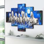 Saumic Craft Presents This Set Of 5 Amazing Paintings For Your Wall . The Painting Will Completely Change The Atmosphere Of The Room Whire It is Placed . The Paintimg Is Made On Heavy Wooden Board And Has A Digital UV Coating On It Which MAKES It Very Easy To Clean . Pricing Of The Product Is Made Very Reasonable From Our Brand As Per The Quality We Are Providing To Our Customers, We Assure That You Will Not Regret Your Purchase, Saumic Craft Is Well Known for Its After Sale Services And In Case If You Feel Some Problem With Any Of Our Product Than You Can Replace It For Free With No Additional Cost . This painting offers a stylish look to your wall as this piece includes three themes it is vastu and also have the essence of abstract and modern art which makes this peice unique and stylish . The 5 pieces wall painting is made with high-quality material, the HD quality print looks fantastic and bright it will not fade easily. With just few simple steps you can mount it to the wall. Thank You For Yor Purchase