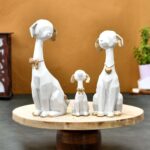 White and Golden Set of 3 Cute Dog family Statues ? Adorable Animal Figurines that elevate your home decor with their undeniable charm! These decorative showpieces are crafted to bring smiles and warmth to your space, perfect for displaying in your living room, bedroom, or even on your office desk. Whether you’re a dog lover or want to surprise someone with a thoughtful gift, these statues are a delightful choice. Celebrate birthdays, housewarmings, or simply spread joy with these lovable companions. Add a touch of whimsy and elegance to your home, and let these canine beauties brighten your surroundings in style!