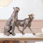 Black Golden Panther Sitting Position Animal Showpiece Antique Sculpture for Home Decor Showpiece Figurine